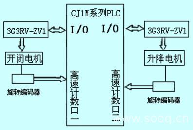 采用歐姆龍公司的cj1m系列plc作為控制核心,用e6c2型旋轉(zhuǎn)編碼器檢測兩個電機的旋轉(zhuǎn)角度,安裝在兩個電機軸上或卷筒軸上,選用兩臺3g3rv-zv1系列變頻器驅(qū)動電機。