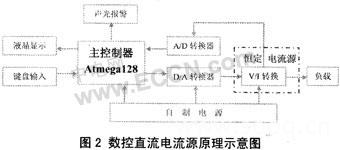 本數(shù)控直流電流源系統(tǒng)以Atmega128為主控制器,采用軟硬件雙閉環(huán)反饋方法,使電源的穩(wěn)定性和輸出精度得到保證,并有普通穩(wěn)壓源實現(xiàn)了穩(wěn)流輸出。通過按鍵來設(shè)置電流源的輸出電流,設(shè)置步進級可選。在系統(tǒng)設(shè)計過程中,力求硬件電路參數(shù)合理,線路簡單,發(fā)揮軟件編程靈活的特點,通過多次調(diào)試,不斷提高系統(tǒng)的精度和電流的穩(wěn)定性,以滿足系統(tǒng)的設(shè)計要求。