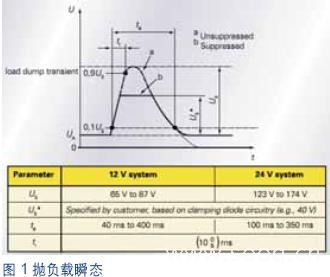幾乎所有直接連接至汽車電池的電子組件和電路都要求保護(hù),以免于受到抑制、瞬態(tài)電壓(高達(dá)60V)和反向電壓狀態(tài)的損害。對(duì)于這些電子電路而言,必須能夠經(jīng)受住電源線路上一定程度的過電壓,這也是種常見的要求。對(duì)于那些要求任何特殊車載電子系統(tǒng)的主電源輸入均能夠在各種不同瞬態(tài)電壓狀態(tài)(包括交流發(fā)電機(jī)拋負(fù)載)下工作的車載系統(tǒng)來說尤為如此。