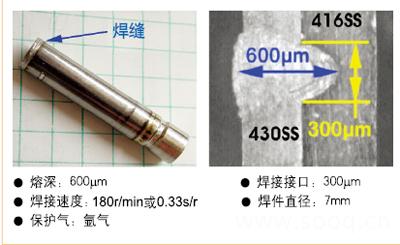 位于密歇根州Novi市的GSI應(yīng)用實驗室的最初任務(wù)是測定原型部件的精確的激光源以及合適的焊接技術(shù)。與Oberg進行探討后發(fā)現(xiàn),盡管1kW連續(xù)Nd : YAG激光器能輕松實現(xiàn)50mm/s的焊接速率,但是這樣該項目就毫無經(jīng)濟性可言。從預(yù)算的角度來說,500W激光器更適用。原型部件于20067月焊接成功,其采用的是支持連續(xù)波(CW)Super ModulatedTM 兩種輸出的JK501SM Nd : YAG激光器。原型部件焊接試驗時,以不帶孔的實管部件為對象。為達到不同的熔透以及檢測其強度,分別采用了不同的焊接速度和參數(shù)。