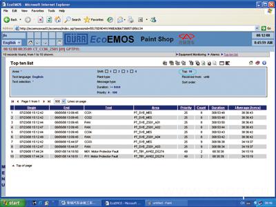 (6)前10名處理。生產(chǎn)設(shè)備的故障和工作通知集中收集在監(jiān)控系統(tǒng)的數(shù)據(jù)庫(kù)中。前10名列表允許對(duì)在一個(gè)可以設(shè)定的時(shí)間段內(nèi),出現(xiàn)頻率最高、總持續(xù)時(shí)間最長(zhǎng)或平均持續(xù)時(shí)間最長(zhǎng)的通知進(jìn)行查詢(xún)。在運(yùn)行的工作中可以獲得設(shè)備大量的故障和通知,這些最重要、最關(guān)鍵的故障通知將沉入到通知流中。