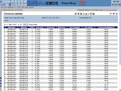 (1)技術(shù)利用率。技術(shù)利用率是在每個(gè)班次結(jié)束后自動(dòng)計(jì)算設(shè)備的利用價(jià)值。計(jì)算出的利用率值可以通過(guò)表格形式顯示,也可以通過(guò)柱形圖的形式顯示。基于設(shè)備的利用率,可以額外計(jì)算出區(qū)域利用率總合(整體利用率)。相關(guān)設(shè)備利用價(jià)值相乘,得出區(qū)域利用率總合。技術(shù)利用率的計(jì)算考慮了導(dǎo)致設(shè)備中斷的一切故障。技術(shù)利用率的評(píng)估基于故障信息分類(lèi),如信息分類(lèi)定義。