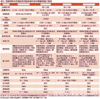 塑料件用涂料和涂裝工藝的水性化在國內(nèi)已開始著手推廣應(yīng)用。國外某知名廠家開發(fā)成功并應(yīng)用的水性塑料件用涂料相關(guān)技術(shù)數(shù)據(jù)和施工要求如表1所示。