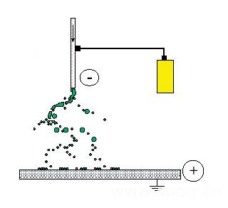 將高電壓加至自由流動的漆流上,漆流在電荷的作用下震動并分散成小滴(見圖7)。