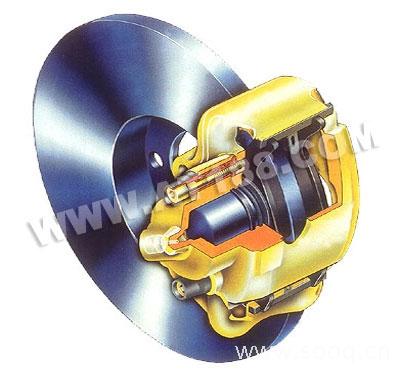 盤式制動(dòng)器又稱為碟式制動(dòng)器,顧名思義是取其形狀而得名。它由液壓控制,主要零部件有制動(dòng)盤、分泵、制動(dòng)鉗、油管等。制動(dòng)盤用合金鋼制造并固定在車輪上,隨車輪轉(zhuǎn)動(dòng)。分泵固定在制動(dòng)器的底板上固定不動(dòng),制‘動(dòng)鉗上的兩個(gè)摩擦片分別裝在制動(dòng)盤的兩側(cè),分泵的活塞受油管輸送來的液壓作用,推動(dòng)摩擦片壓向制動(dòng)盤發(fā)生摩擦制動(dòng),動(dòng)作起來就好像用鉗子鉗住旋轉(zhuǎn)中的盤子,迫使它停下來一樣。