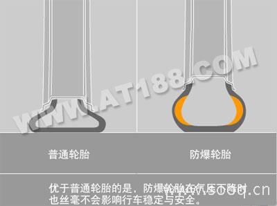 防爆輪胎采用兩側(cè)加強(qiáng)技術(shù)和阻燃橡膠材質(zhì),即使輪胎受損,仍可讓您繼續(xù)行駛。利用這種特殊的結(jié)構(gòu),防爆輪胎甚至還可以提高汽車的靈活性和駕駛動(dòng)態(tài),優(yōu)于普通輪胎的是,防爆輪胎在氣壓下降時(shí)也絲毫不會(huì)影響行車穩(wěn)定與安全。即使所有的氣都跑光,BMW防爆輪胎依然能帶您安然駛向修理廠,在輪胎氣壓為0的情況下,它仍然可以以80公里/小時(shí)的速度,繼續(xù)行駛150公里。