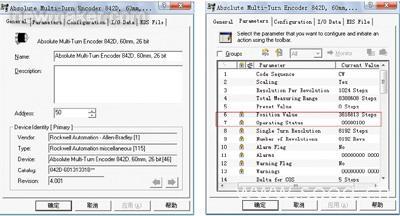 通過對產(chǎn)品的各方面比較,最終選用了羅克韋爾自動化的842D絕對值編碼器,該產(chǎn)品具有DeviceNet接口,最大轉數(shù)8192轉,單轉分辨率可自由配置(1~8192步)。