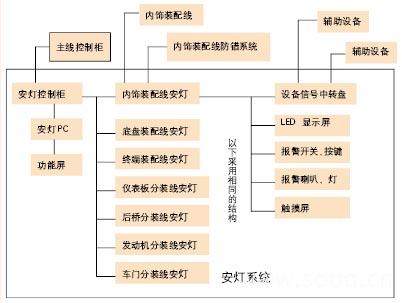 隨著汽車制造企業(yè)總裝輸送線年產(chǎn)量的不斷提高,安燈系統(tǒng)得到廣泛應(yīng)用。它不僅能夠?qū)崟r顯示當(dāng)前的計劃產(chǎn)量、實際產(chǎn)量、進(jìn)度及時間,使管理人員隨時了解生產(chǎn)狀況,而且具有快速顯示生產(chǎn)異常工位、減少問題產(chǎn)品等諸多優(yōu)點。