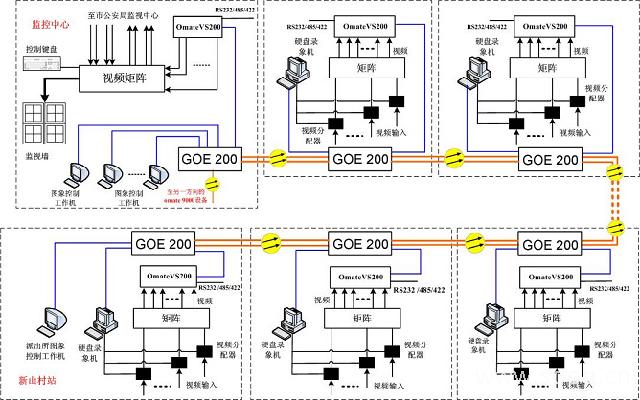 本方案骨干網(wǎng)采用GOE 200千兆工業(yè)以太網(wǎng)交換機組成自愈環(huán)型網(wǎng)絡(luò),系統(tǒng)穩(wěn)定可靠,各車站的圖像信號通過Omate VS200網(wǎng)絡(luò)視頻編碼器,經(jīng)過GOE 200千兆工業(yè)以太網(wǎng)交換機傳送到監(jiān)控中心,再通過Omate VS200網(wǎng)絡(luò)視頻解碼器進行解碼,實現(xiàn)視頻信號的傳輸。