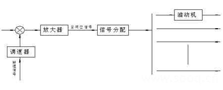 液壓調(diào)速系統(tǒng)控制器,由調(diào)速器、同步器、放大器、信號分配器等環(huán)節(jié)組成,控制策略為轉(zhuǎn)速有差調(diào)節(jié)。由調(diào)速器和同步器給出轉(zhuǎn)速偏差信號,經(jīng)過液壓放大器放大,形成總閥位信號,經(jīng)過信號分配器控制各執(zhí)行器,即油動機(jī),由油動機(jī)驅(qū)動和定位汽輪機(jī)的調(diào)節(jié)機(jī)構(gòu),即調(diào)節(jié)閥。單機(jī)運行時,同步器用來調(diào)整汽輪機(jī)轉(zhuǎn)速;并網(wǎng)后,同步器用來調(diào)整分配給本機(jī)的負(fù)荷。