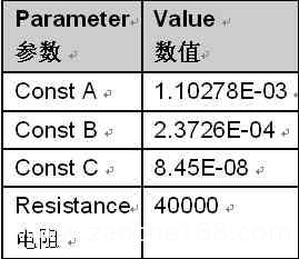 7:溫度傳感器參數(shù)設(shè)置表