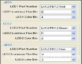 設(shè)置的溫度傳感器和LED型號規(guī)格屬性參數(shù)值自動生成所需要的溫度補(bǔ)償和型號規(guī)格補(bǔ)償軟件。