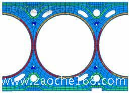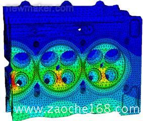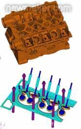 缸蓋和缸體是最重要的主體結(jié)構(gòu)部件,它們的耐久性和可靠性直接影響整個(gè)發(fā)動(dòng)機(jī)的性能。所以,在設(shè)計(jì)前期,就必須對(duì)缸蓋缸體在各種工況下的溫度和強(qiáng)度、缸孔變形、缸墊壓力分布以及這些結(jié)構(gòu)的高周疲勞進(jìn)行評(píng)估。