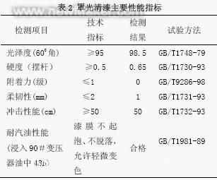 (1) 通過在罩光清漆中加入 10 %的高固含、高羥基含量的聚酯樹脂對丙烯酸樹脂進行改性,提高了 罩光清漆的豐滿度和抗劃傷性能。
