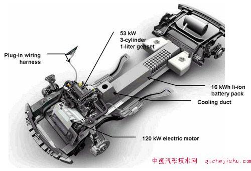 圖10:傳統(tǒng)混合動(dòng)力車的燃油經(jīng)濟(jì)性在實(shí)現(xiàn)百公里油耗5升左右后止步,而電池容量更大的插電式混合動(dòng)力車很可能將成為現(xiàn)有混合動(dòng)力技術(shù)走出瓶頸的關(guān)鍵一步。圖為雪佛蘭Volt插電式混合動(dòng)力車,將在2010年前后上市。
