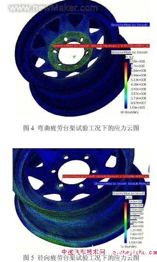 通過對該型汽車車輪鋼圈進行有限元分析,驗證了車輪鋼圈在彎曲疲勞臺架試驗和徑向疲勞臺架試驗結果的正確定,用應力云圖形象地表示了車輪鋼圈在彎曲和徑向工況下的應力大小及分布,為車輪設計開發(fā)提供了有利的依據(jù),從而避免了設計中的盲目性,減少設計成本,縮短設計周期。