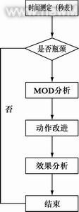 將每個(gè)環(huán)節(jié)的時(shí)間與生產(chǎn)能力要求相比較,達(dá)不到要求的即是瓶頸環(huán)節(jié),也便是改進(jìn)點(diǎn)。對(duì)瓶頸環(huán)節(jié)進(jìn)行分析改進(jìn),主要采用了MOD法(模特法)。