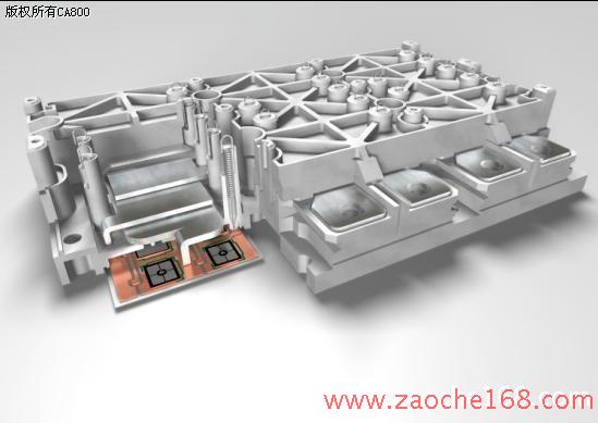 常規(guī)IGBT模塊,包括那些賽米控生產(chǎn)的,是基于3mm厚底板設(shè)計(jì)的,如圖1所示。一個(gè)或更多的裝有IGBT芯片的DBC基板和連接端子是焊接在底板上的。鋁導(dǎo)線用于連接硅片的上部和基板。