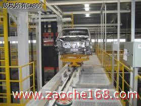 主焊線到調(diào)整線的空中地面摩擦線輸送系統(tǒng),調(diào)整線至涂裝轉掛點的空中地面摩擦線輸送及存儲系統(tǒng),車身調(diào)整線板式輸送鏈;調(diào)整線首尾車身自動同步側頂機4臺;主焊線上件升降機2臺、調(diào)整線上件升降機2臺;主焊線至調(diào)整線下件升降機2臺;車身在焊涂通廊升降舉升裝置(2臺)和焊裝車間內(nèi)上下件檢修升降段(1臺);臺車定位驗具裝置,檢修段。