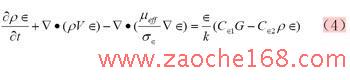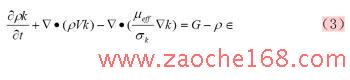 其中C∈1, C∈2, σκ, σ∈為常數(shù),其取值一般為:C∈1=1.44,C∈2=1.92,σκ=1.0,σ∈=1.3。剪切生成項G的取值一般按下式得出