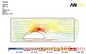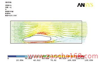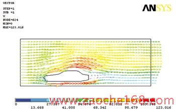 由ANSYS分析計算得知:在汽車頭部氣流開始分流,而汽車外形的變化使流速開始加快。在汽車的頂部和底部產(chǎn)生高速區(qū),且在車頂部分產(chǎn)生最高流速,然后開始逐漸回落。汽車尾流中有縱向的渦流產(chǎn)生,隨尾流的發(fā)展,渦流由強到弱,渦心降低(逐漸接近軌面),渦核向外移動。通過比較,第三種車型優(yōu)于其他兩種車型,且在低速和高速時都有較好的空氣動力性能。故在汽車外形發(fā)展設(shè)計研究時,應(yīng)盡量將汽車外形設(shè)計成流線型,外形曲面曲率不應(yīng)出現(xiàn)突變或變化過大,避免產(chǎn)生流動分離。