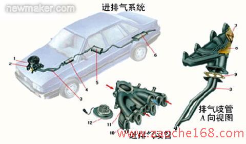 對(duì)于化油器式或節(jié)氣門體汽油噴射式發(fā)動(dòng)機(jī),進(jìn)氣歧管指的是化油器或節(jié)氣門體之后到氣缸蓋進(jìn)氣道之前的進(jìn)氣管路。它的功用是將空氣、燃油混合氣由化油器或節(jié)氣門體分配到各缸進(jìn)氣道。