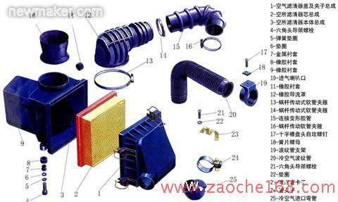 空氣濾清器一般由進(jìn)氣導(dǎo)流管、空氣濾清器蓋、空氣濾清器外殼和濾芯等組成。現(xiàn)在廣泛用于汽車發(fā)動(dòng)機(jī)上的空氣濾清器仍有多種結(jié)構(gòu)形式。