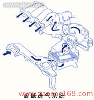 由于進(jìn)氣過(guò)程具有間歇性和周期性,致使進(jìn)氣歧管內(nèi)產(chǎn)生一定幅度的壓力波。此壓力波以當(dāng)?shù)芈曀僭谶M(jìn)氣系統(tǒng)內(nèi)傳播和往復(fù)反射。如果利用一定長(zhǎng)度和直徑的進(jìn)氣歧管與一定容積的諧振室組成諧振進(jìn)氣系統(tǒng),并使其固有頻率與氣門的進(jìn)氣周期調(diào)諧,那么在特定的轉(zhuǎn)速下,就會(huì)在進(jìn)氣門關(guān)閉之前,在進(jìn)氣歧管內(nèi)產(chǎn)生大幅度的壓力波,使進(jìn)氣歧管的壓力增高,從而增加進(jìn)氣量。這種效應(yīng)稱作進(jìn)氣波動(dòng)效應(yīng)。諧振進(jìn)氣系統(tǒng)的優(yōu)點(diǎn)是沒(méi)有運(yùn)動(dòng)件,工作可靠,成本低。但只能增加特定轉(zhuǎn)速下的進(jìn)氣量和發(fā)動(dòng)機(jī)轉(zhuǎn)矩。