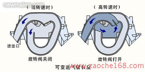為了充分利用進(jìn)氣波動(dòng)效應(yīng)和盡量縮小發(fā)動(dòng)機(jī)在高、低速運(yùn)轉(zhuǎn)時(shí)進(jìn)氣速度的差別,從而達(dá)到改善發(fā)動(dòng)機(jī)經(jīng)濟(jì)性及動(dòng)力性特別是改善中、低速和中、小負(fù)荷時(shí)的經(jīng)濟(jì)性和動(dòng)力性的目的,要求發(fā)動(dòng)機(jī)在高轉(zhuǎn)速、大負(fù)荷時(shí)裝備粗短的進(jìn)氣歧管;而在中、低轉(zhuǎn)速和中、小負(fù)荷時(shí)配用細(xì)長(zhǎng)的進(jìn)氣歧管??勺冞M(jìn)氣歧管就是為適應(yīng)這種要求而設(shè)計(jì)的。