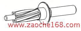 建立的齒輪齒條式轉(zhuǎn)向器齒輪軸模型如圖3,而另一些螺釘、螺母之類(lèi)的標(biāo)準(zhǔn)件則可以從標(biāo)準(zhǔn)件圖庫(kù)中導(dǎo)入。