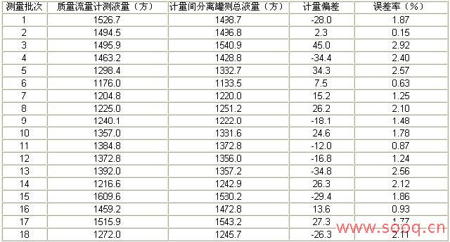 表1反應(yīng)出了質(zhì)量流量計(jì)與各計(jì)量站分離器的液量計(jì)量結(jié)果對(duì)比,從該對(duì)比結(jié)果可以看出質(zhì)量流量計(jì)與分離器液量計(jì)量結(jié)果之間的誤差都在3%之內(nèi),小于油田企業(yè)原油計(jì)量的誤差標(biāo)準(zhǔn)。并且在圖3中也可以明顯地看出計(jì)量結(jié)果趨勢(shì)的一致性。
