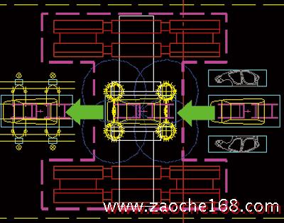 該線水平輸送工件是通過電動機驅(qū)動往復(fù)輸送機在鋼軌上運行,工件頂升、落下采用氣缸頂升裝置實現(xiàn),使用該種輸送方式的生產(chǎn)線也不少,如全順V348焊接主線和南京福特的馬自達主線等。