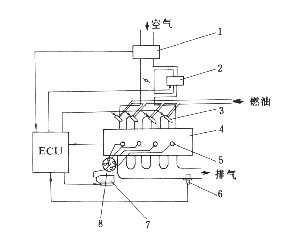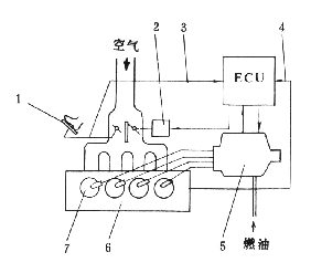 所謂動(dòng)力牽引系統(tǒng)是用來產(chǎn)生驅(qū)動(dòng)汽車的原動(dòng)力,并把這一動(dòng)力轉(zhuǎn)換成可直接驅(qū)動(dòng)車輪的扭矩。動(dòng)力牽引系統(tǒng)控制包括發(fā)動(dòng)機(jī)控制和傳輸系統(tǒng)控制。發(fā)動(dòng)機(jī)控制系統(tǒng)一般分為燃油噴射控制、點(diǎn)火時(shí)間控制、怠速運(yùn)轉(zhuǎn)控制、發(fā)動(dòng)機(jī)爆燃控制和其它相應(yīng)的控制。對(duì)于汽油機(jī)的電子控制系統(tǒng)具有諸如燃油噴射控制、點(diǎn)火時(shí)間控制、怠速運(yùn)轉(zhuǎn)控制和故障診斷等功能。通過這些功能的執(zhí)行可使汽油機(jī)處于最佳的工作狀態(tài)。汽油機(jī)控制的典型系統(tǒng)如圖1.3 所示,圖中所示的汽油機(jī)控制系統(tǒng)是采用多點(diǎn)噴射(MPI)的燃油噴射控制方法。即在汽油機(jī)的各氣缸進(jìn)氣支管中安裝燃油噴射器,通過對(duì)各燃油噴射器的控制來控制噴入各氣缸的油量。當(dāng)前在工業(yè)發(fā)達(dá)國家?guī)缀跛行鲁鰪S的轎車都無一例外地采用了電子燃油噴射(EFI )技術(shù)。