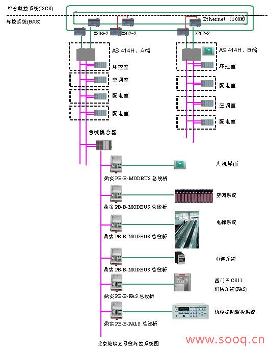 北京地鐵五號(hào)線的環(huán)境與設(shè)備監(jiān)控系統(tǒng)(簡(jiǎn)稱(chēng)BAS)包括16個(gè)地下車(chē)站的站級(jí)BAS、7個(gè)地面車(chē)站站級(jí)BAS、宋家莊停車(chē)場(chǎng)的站級(jí)BAS、太平莊車(chē)輛段的站級(jí)BAS。該系統(tǒng)通過(guò)使用北京鼎實(shí)科技多協(xié)議總線橋?qū)崿F(xiàn)PROFIBUS 現(xiàn)場(chǎng)總線到MODBUS系統(tǒng)、消防系統(tǒng)FAS、振動(dòng)儀系統(tǒng)、電源系統(tǒng)等協(xié)議的轉(zhuǎn)換,對(duì)北京地鐵五號(hào)線23個(gè)車(chē)站及停車(chē)場(chǎng)、車(chē)輛段的暖通空調(diào)系統(tǒng)、給排水、低壓配電與動(dòng)力照明系統(tǒng)、電梯系統(tǒng)、安全門(mén)系統(tǒng)、車(chē)站事故照明電源等車(chē)站設(shè)備進(jìn)行全面、有效地進(jìn)行自動(dòng)化監(jiān)控及管理;及時(shí)、準(zhǔn)確的將監(jiān)視數(shù)據(jù)上傳給綜合監(jiān)控系統(tǒng)(簡(jiǎn)稱(chēng)ISCS),同時(shí)接收ISCS所下達(dá)的模式控制、單點(diǎn)控制等控制指令;確保設(shè)備處于安全、可靠、高效、節(jié)能的最佳運(yùn)行狀態(tài),從而提供一個(gè)舒適的乘車(chē)環(huán)境。并能在火災(zāi)或阻塞等災(zāi)害狀態(tài)下,更好地協(xié)調(diào)車(chē)站設(shè)備的運(yùn)行,充分發(fā)揮各種設(shè)備應(yīng)有的作用,保證乘客的安全和設(shè)備的正常運(yùn)行。