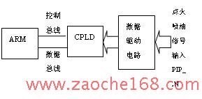 點(diǎn)火和噴油信號(hào)是汽車發(fā)動(dòng)機(jī)中的關(guān)鍵信號(hào),其周期和時(shí)序直接關(guān)系到汽車的運(yùn)行狀態(tài),因此監(jiān)測它們的周期和時(shí)序尤為重要。本系統(tǒng)監(jiān)測原理圖如圖6所示,對于點(diǎn)火信號(hào)的監(jiān)測,主要是監(jiān)測它與CPS信號(hào)的同步,以及兩個(gè)或四個(gè)點(diǎn)火信號(hào)之間的時(shí)序關(guān)系。當(dāng)CPLD尋找到點(diǎn)火信號(hào)與CPS同步的起始點(diǎn)后,根據(jù)輸入的PIP_IN信號(hào),對各點(diǎn)火信號(hào)進(jìn)行計(jì)數(shù)。每當(dāng)一個(gè)點(diǎn)火周期完成后,在下一個(gè)點(diǎn)火周期向ARM 單片機(jī)產(chǎn)生一個(gè)中斷信號(hào)。該中斷信號(hào)觸發(fā)ARM 單片機(jī)進(jìn)入中斷處理程序,在該中斷程序中,ARM單片機(jī)讀入對各點(diǎn)火信號(hào)的計(jì)數(shù)值,判斷點(diǎn)火信號(hào)的時(shí)序和周期,并設(shè)置點(diǎn)火信號(hào)正常與否的標(biāo)志。對于噴油信號(hào)的監(jiān)測,主要是監(jiān)測它與CPS信號(hào)的同步,以及它們之間的時(shí)序關(guān)系。當(dāng)PIP_IN信號(hào)中四個(gè)噴油信號(hào)中任何一個(gè)信號(hào)的下降沿到來時(shí),CPLD都會(huì)監(jiān)測其它三個(gè)噴油信號(hào)的狀態(tài),如果其它三個(gè)噴油信號(hào)的狀態(tài)正常,即給出噴油信號(hào)正常標(biāo)志,反之給出噴油信號(hào)異常標(biāo)志。