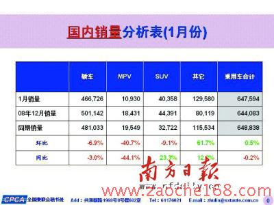 比亞迪汽車:1月銷量為21915輛,同比增長79.8%。比亞迪F3當月銷售14938輛。比亞迪2009年銷售目標是40萬輛。
