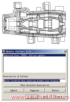 (3)虛擬交線引起的添加TOP視圖失敗(見圖5)。在添加TOP試圖時(shí),出現(xiàn)視圖不能更新的提示,經(jīng)過分析測(cè)試發(fā)現(xiàn)是由虛擬交線引起。