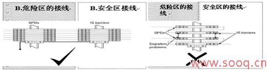 因此應(yīng)該使用經(jīng)過本安或隔爆認(rèn)證的SPD。應(yīng)該注意的是,SPD自身并非是本安器件,盡管兩者在機(jī)械和電氣性能上有明顯的相同點(diǎn)。然而,盡管經(jīng)過認(rèn)證的SPD可用于本安回路中,并不是說就可以省去安全柵了。