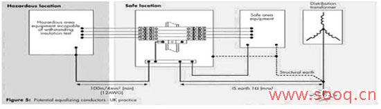 在IEC79:14記錄了協(xié)調(diào)各種標(biāo)準(zhǔn)后的最新成果。在6.5節(jié),建議應(yīng)該采用防雷保護(hù)的國(guó)家標(biāo)準(zhǔn)(在英國(guó),是BS6651:1992),12.2.4節(jié)中專門論述了本安回路的接地。圖4對(duì)于齊納式安全柵的接地也有指導(dǎo)意義。