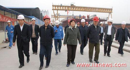 11月2日下午,京滬高速鐵路股份有限公司監(jiān)事會主席劉雅芝一行在蚌埠建設(shè)指揮部指揮長尤忠濤、常務(wù)副指揮長王曉和中國鐵建中鐵十五局集團(tuán)公司副總經(jīng)理兼京滬指揮部指揮長、黨委書記習(xí)仲偉、副指揮長、總工程師王紅升、副指揮長徐萬鵬、許傳波等領(lǐng)導(dǎo)的陪同下,檢查了城關(guān)鎮(zhèn)制梁場施工管理工情況。對該梁場的安全文明施工、標(biāo)準(zhǔn)化管理、規(guī)?;a(chǎn)以及箱梁鋪架進(jìn)展情況等方面給予了充分肯定。