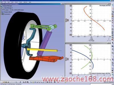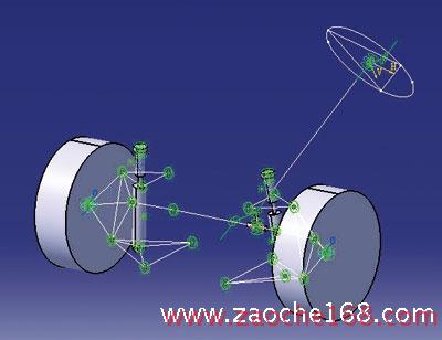 汽車在遇到障礙物或路面不平引起的顛簸運動、加減速時引起的車身縱傾運動和轉(zhuǎn)彎時引起的車身側(cè)傾運動都會產(chǎn)生車輪的跳動。如果車輛的懸架結(jié)構(gòu)設計不當,在車輪跳動時前輪定位參數(shù)的變化量可能很大,影響車輛行駛性能,出現(xiàn)轉(zhuǎn)向沉重、輪胎偏磨等問題。