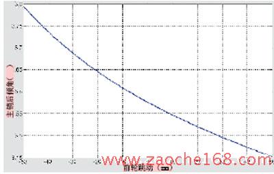 圖3 前輪上下跳動對主銷內(nèi)傾角的影響