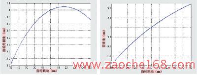 圖4 前輪上下跳動對前輪外傾角與前束角的影響