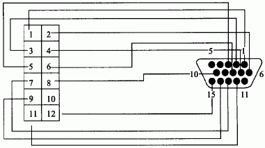 圖1中,VGA1與D型15顯示器插座接口的連接線路焊接示意如圖3所示: