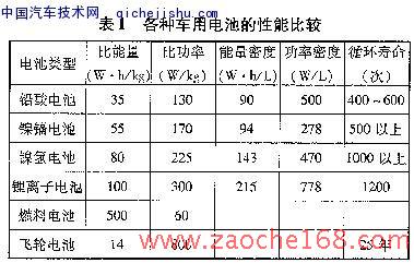 到目前為止,電動(dòng)汽車車用動(dòng)力蓄電池經(jīng)過(guò)3代的發(fā)展,已取得了突破性的進(jìn)展。第1代是鉛酸電池,目前主要是閥控鉛酸電池(VRLA),由于其比能量較高、價(jià)格低和能高倍率放電,因此是目前唯一能大批量生產(chǎn)的電動(dòng)汽車用電池。第2代是堿性電池,主要有鎳鍋、鎳氫、鈉硫、鏗離子和鋅空氣等多種電池,其比能量和比功率都比鉛酸電池高,因此大大提高了電動(dòng)汽車的動(dòng)力性能和續(xù)駛里程,但其價(jià)格卻比鉛酸電池高。只要能采用廉價(jià)材料,電動(dòng)汽車用銼離子電池將獲得長(zhǎng)足的發(fā)展,目前關(guān)鍵是要降低批量化生產(chǎn)的成本,提高電池的可靠性、一致性及壽命。第3代是以燃料電池為主的電池。燃料電池直接將燃料的化學(xué)能轉(zhuǎn)變?yōu)殡娔?,能量轉(zhuǎn)變效率高,比能量和比功率都高,并且、可以控制反應(yīng)過(guò)程,能量轉(zhuǎn)化過(guò)程可以連續(xù)進(jìn)行,因此是理想的汽車用電池。表1為各種車用電池的性能比較。