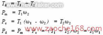 式中T1、T2、Td 分為內(nèi)電機(jī)(發(fā)動機(jī))、外電機(jī)和傳動軸轉(zhuǎn)矩;ω1、ω2分別為發(fā)動機(jī)和傳動軸的角速度;Pm、Pe、Pd分別為內(nèi)外轉(zhuǎn)子之間直接傳遞的機(jī)械功率、內(nèi)外電機(jī)之間傳遞的電功率和傳動軸的總輸出功率。