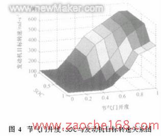 在確定發(fā)動機(jī)目標(biāo)轉(zhuǎn)速時(shí),需考慮汽車行駛時(shí)電池SOC的穩(wěn)定問題。如圖4,SOC的標(biāo)準(zhǔn)值為0165,正Tf356常工作范圍為效率可達(dá)到最高。當(dāng)發(fā)動機(jī)轉(zhuǎn)速與傳動軸轉(zhuǎn)速不等時(shí),發(fā)動機(jī)的功率靠機(jī)、電兩個(gè)通道傳遞,其中電力通道的最高效率約為73%,隨著發(fā)動機(jī)與傳動軸的轉(zhuǎn)差的減小,電力通道的效率降低,但電力通道所傳遞的能量流比例減小,系統(tǒng)的總效率提高。由于系統(tǒng)的電力通道等同于串聯(lián)混合動力系統(tǒng),因此汽車運(yùn)行時(shí),雙轉(zhuǎn)子混合動力系統(tǒng)的總效率要比串聯(lián)混合動力系統(tǒng)高得多。