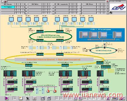 為了滿足生產(chǎn)工藝各項控制功能要求,確保高爐安全生產(chǎn),項目采用兩級自動化控制系統(tǒng),完成對高爐主工藝線及主要輔助設施的控制。第一級為基礎自動化級,由電氣傳動自動化和儀表自動化系統(tǒng)組成,主要完成生產(chǎn)過程的數(shù)據(jù)采集、數(shù)據(jù)顯示、執(zhí)行對生產(chǎn)過程的連續(xù)調(diào)節(jié)控制和邏輯順序控制、設備狀態(tài)監(jiān)視及故障報警;第二級為過程控制級,主要完成數(shù)據(jù)處理、數(shù)據(jù)庫建立和生產(chǎn)報表的管理與打印,完成與其它計算機進行數(shù)據(jù)通信等工作。工程選用了PCS 7控制器15套,其中417H冗余控制器4套,共計近8000點I/O?;赑CS 7這個核心支柱,承鋼遵循了西門子公司全集成自動化TIA的理念,在PCS 7這個高度集成和開放的領先平臺之外,配備了SCALANCE系列的網(wǎng)絡產(chǎn)品,網(wǎng)絡層主干環(huán)網(wǎng)為千兆以太網(wǎng)。系統(tǒng)主要包括冗余AS控制器4套,標準AS控制器11套,具有熱插拔功能的ET-200M單元62套,SCALANCE各系列交換機21臺。
