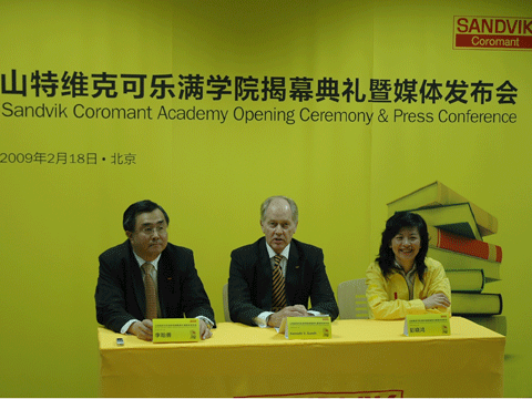 2009年2月18日,山特維克可樂(lè)滿學(xué)院(以下簡(jiǎn)稱“學(xué)院”)揭幕典禮暨媒體發(fā)布會(huì)在山特維克可樂(lè)滿北京辦公室隆重舉行。山特維克可樂(lè)滿全球總裁Kenneth Sundh先生來(lái)到了儀式現(xiàn)場(chǎng),并與山特維克中國(guó)投資有限公司總裁Svante Lindholm先生共同為學(xué)院揭幕。山特維克中國(guó)副總裁、山特維克可樂(lè)滿大中華區(qū)總經(jīng)理李貽善先生為學(xué)院的成立做了精彩的致辭。揭幕儀式的成功舉行意味著山特維克可樂(lè)滿學(xué)院正式落戶大中華區(qū)。學(xué)院位于山特維克可樂(lè)滿北京辦公室內(nèi),面積133平米,配備了先進(jìn)的多媒體和自動(dòng)化培訓(xùn)設(shè)備。在儀式上,山特維克可樂(lè)滿大中華區(qū)市場(chǎng)及業(yè)務(wù)拓展總監(jiān)彭曉鴻女士還向與會(huì)嘉賓介紹了全新的金屬切削技術(shù)培訓(xùn)教材。在儀式舉行完后,來(lái)自行業(yè)媒體的眾多嘉賓還踴躍地與山特維克可樂(lè)滿的高層就當(dāng)前行業(yè)和公司發(fā)展的情況進(jìn)行了現(xiàn)場(chǎng)問(wèn)答。