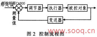 2.2 變增益三區(qū)段非線性PID控制 將pH值變化按拐點分為:一個高增益區(qū)和兩個增益系數(shù)不同的低增益區(qū)。高增益區(qū)控制器采用較低增益;低增益區(qū)控制器采用不同的高增益,以滿足系統(tǒng)期望的性能指標(biāo)。此外為防止積分飽和,采用帶死區(qū)和輸出限幅的PID控制算法。 2. 3 模糊控制 模糊控制算法概括為:根據(jù)本次采樣得到的系統(tǒng)輸出值,計算出輸入變量;將輸入變量的精確量變?yōu)槟:?根據(jù)輸入變量(模糊量)及模糊控制規(guī)則,按模糊推理合成規(guī)則計算控制量(模糊量);由上述得到的控制量(模糊量)計算精確的控制量。 3 電廠鍋爐給水加藥控制系統(tǒng) 某發(fā)電廠共有4臺300 MW的發(fā)電機(jī)組,分為兩個單元,一單元為1#、2#機(jī)組,二單元為3#和4#機(jī)組。每個單元加藥計量泵包括鍋爐補給水(生水經(jīng)各種水處理方式凈化后.用于補充火力發(fā)電廠的汽水損失)和爐水兩種用水?,F(xiàn)以二單元為例,加藥系統(tǒng)采用兩用一備共3臺加藥計量泵,即3#和4#機(jī)組各用l臺加藥計量泵,當(dāng)其中l(wèi)臺出現(xiàn)故障時切換到備用泵。在該系統(tǒng)中通過檢測pH值來控制爐水中磷酸鹽的加入量,pH值要求控制在914~9.78,當(dāng)其中1臺機(jī)組的pH值低于9.4時,啟動相應(yīng)機(jī)組的加藥泵。此時,磷酸鹽加藥箱內(nèi)的磷酸鹽溶液經(jīng)過管道(管道上的閥門都為手動閥,正常時為打開狀態(tài))被泵入相應(yīng)機(jī)組的除氧器出水管加藥點。若3#機(jī)組的加藥計量泵出現(xiàn)故障,則打開備用泵與其相連管道上的閥門,備用泵接替3#機(jī)組的加藥計量泵,為3#機(jī)組的爐水加藥;4#機(jī)組亦然。由于爐水中加入了適當(dāng)?shù)牧姿猁}及氫氧化鈉,可提高爐水的緩沖性能,并有利于維持爐水pH值的穩(wěn)定性,從而防止鍋爐水冷壁的結(jié)垢和腐蝕。 該系統(tǒng)將爐水水樣經(jīng)過減溫減壓裝置引入磷酸表及pH表探頭進(jìn)行測量,經(jīng)過模擬量轉(zhuǎn)換,再經(jīng)控制系統(tǒng)PID運算后控制變頻器輸出,控制加藥泵轉(zhuǎn)速,從而實時控制爐水的加藥量,使?fàn)t水的磷酸根濃度與pH較好地保持在合格的范圍內(nèi)。圖2給出其控制流程圖。該控制分為調(diào)節(jié)器、執(zhí)行器、被控對象及變送器4部分。其中,調(diào)節(jié)器由S7-200 PLC和相應(yīng)控制軟件組成;執(zhí)行器由變頻器、電機(jī)和計量泵組成;被控對象為爐水;變送器采用分析儀表,即pH表。